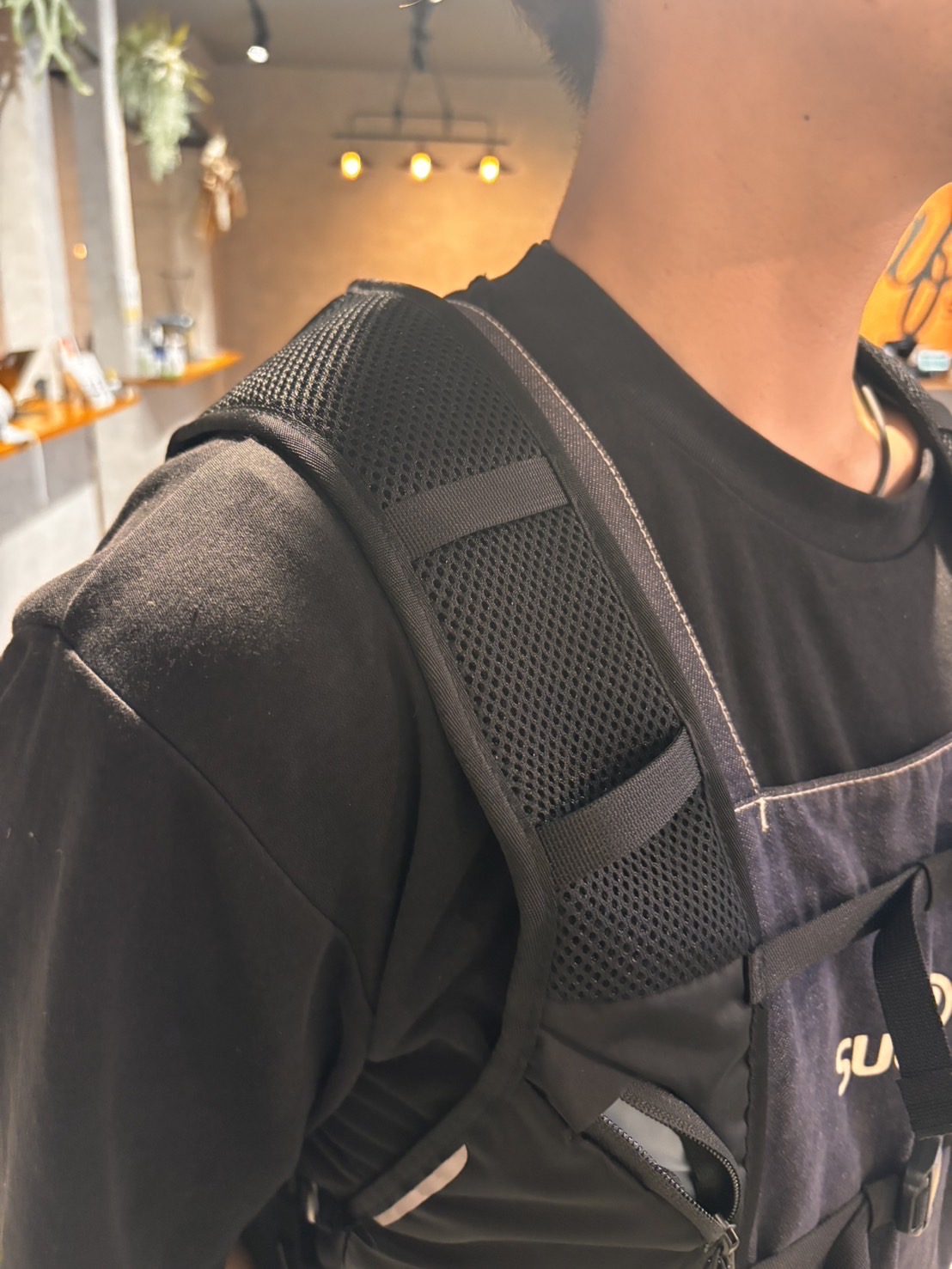 VESTはシンプルな構造。ジップがついていないポケットは荷物を取り出すのに手間取りません!また、貴重品など大切なものはジップ付きポケットもあるため安心です😌