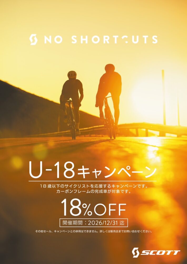 18歳以下のサイクリストの方に限り、18%OFFとなるキャンペーン!