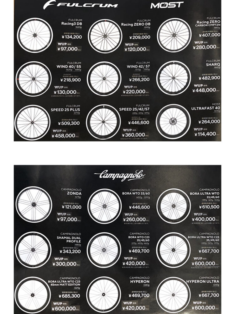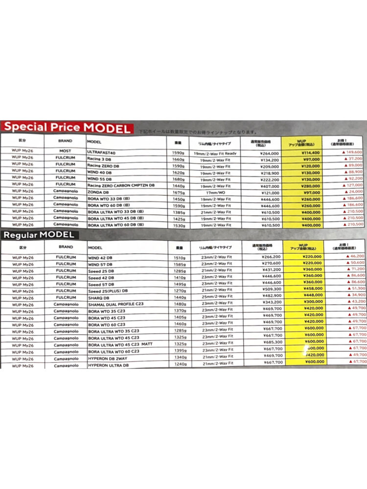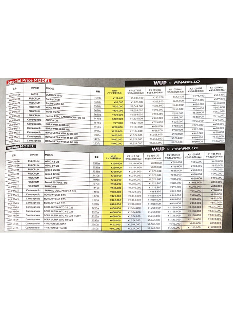 対象となるモデルは、完成車販売のF7、F5、X3、X1。WUP対象のホイールには、新たにカンパニョーロ SHAMAL DUAL PROFILEやフルクラム SHARQなどの最新ホイールを追加。